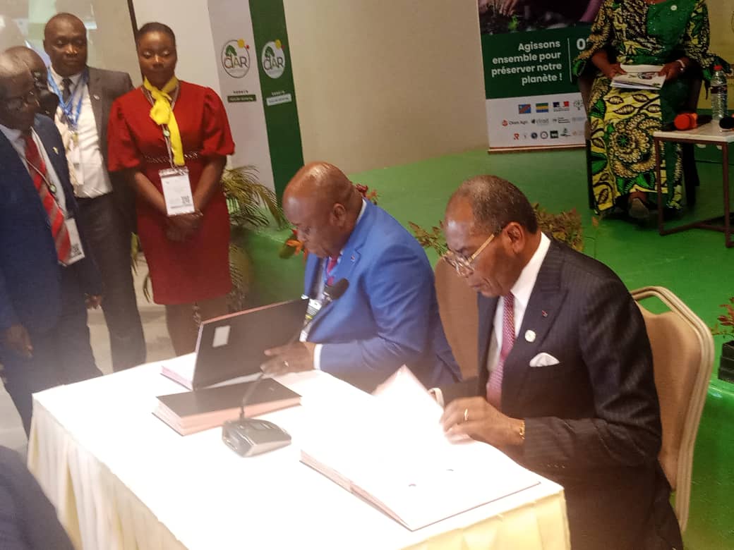 Un accord de bail emphytéotique a été conclu entre le gouvernement congolais, représenté par les ministres des Affaires foncières, des Finances, de l’Économie forestière et de l’Intérieur, et la Société Nationales des Pétrones du Congo (SNPC), représentée par son directeur général, en marge de la première Conférence Internationale sur l’Afforestation et le Reboisement, tenue du 02 au 05 juillet 2024, à Kintélé (Brazzaville).